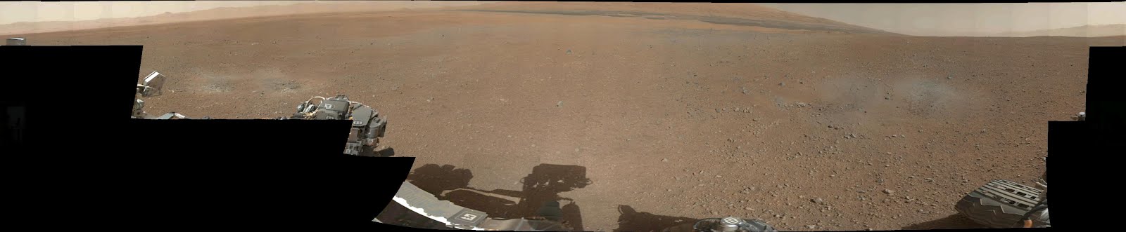 Aterrizado en el blanco cerca del borde de 150 km de ancho cráter Gale, con el Monte de Sharp en el horizonte es el lugar en el centro del cráter. Como un móvil de tamaño de un coche con seis ruedas y un láser, te preparas para ir a una misión de dos años de exploración, escalar el Monte Sharp en busca de indicios de que Marte alguna vez albergara la vida. Sus exploraciones de rodadura es probable que comenzará en unos días. ¿Qué encontrarás? ¿Qué hay ahí fuera? Texto Apod resumido.